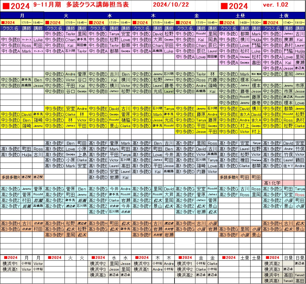 ◆高3受験多読FGH、高2多読Y/Z、多読多聴R 以外のすべての授業は、日本人講師と外国人講師のペア授業です