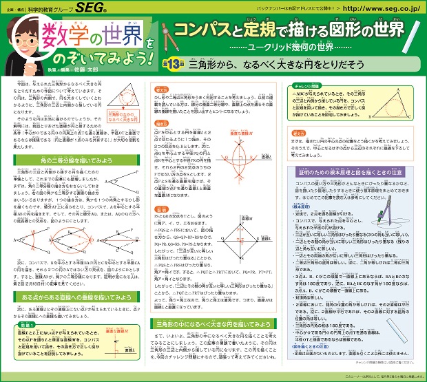 数学の世界をのぞいてみよう!第13回 三角形から、なるべく大きな円をとりだそう