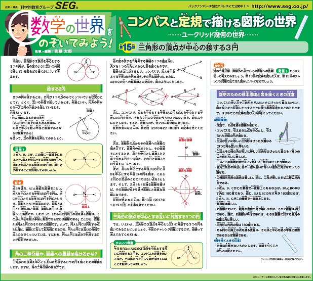 数学の世界をのぞいてみよう!第15回 三角形の頂点が中心の接する3円