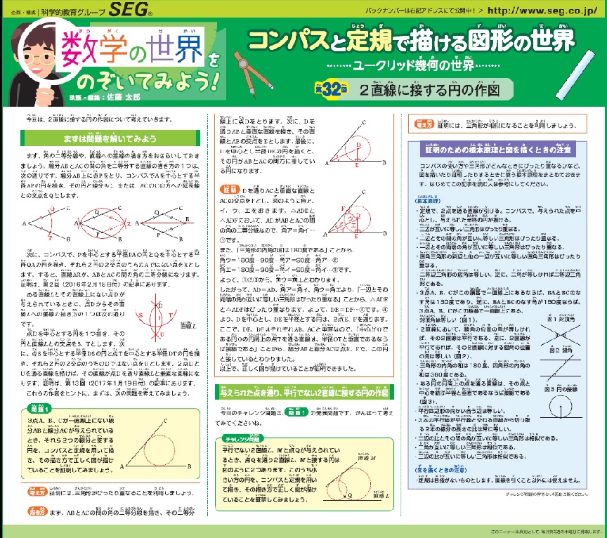 数学の世界をのぞいてみよう!第32回 2直線に接する円の作図