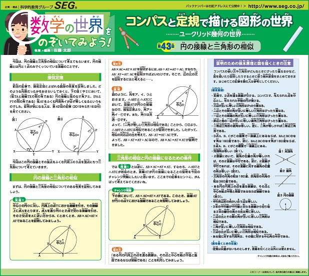数学の世界をのぞいてみよう!第43回 円の接線と三角形の相似