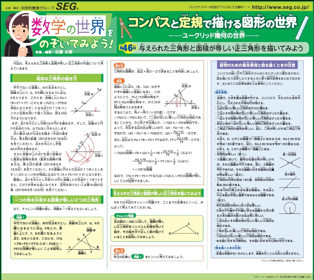 数学の世界をのぞいてみよう!第46回 与えられた三角形と面積が等しい正三角形を描いてみよう