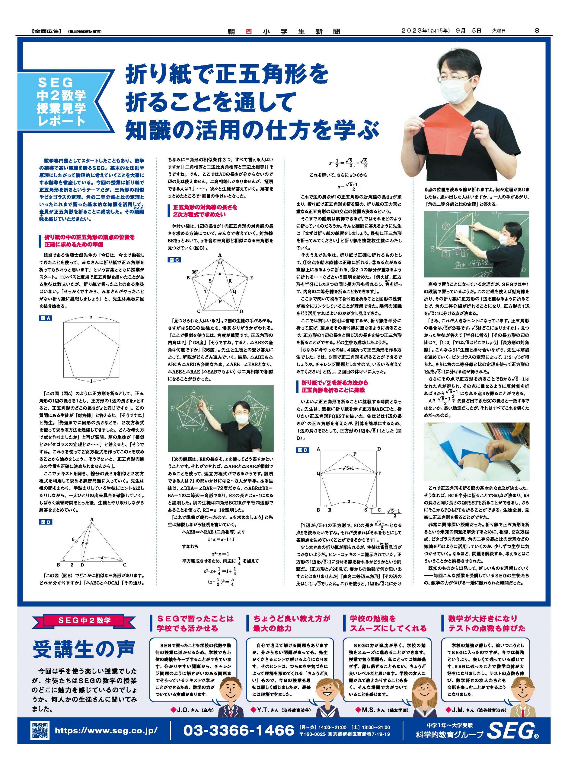 さぴあ4月号掲載 数学Extreme体験授業(新中1生対象)授業レポート~「数学の世界を自由に広げ豊かな思考力・発想力を育む」