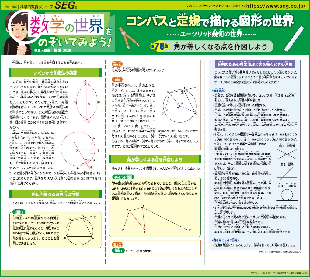 数学の世界をのぞいてみよう!第83回 与えられた条件をみたす正方形を作図しよう2