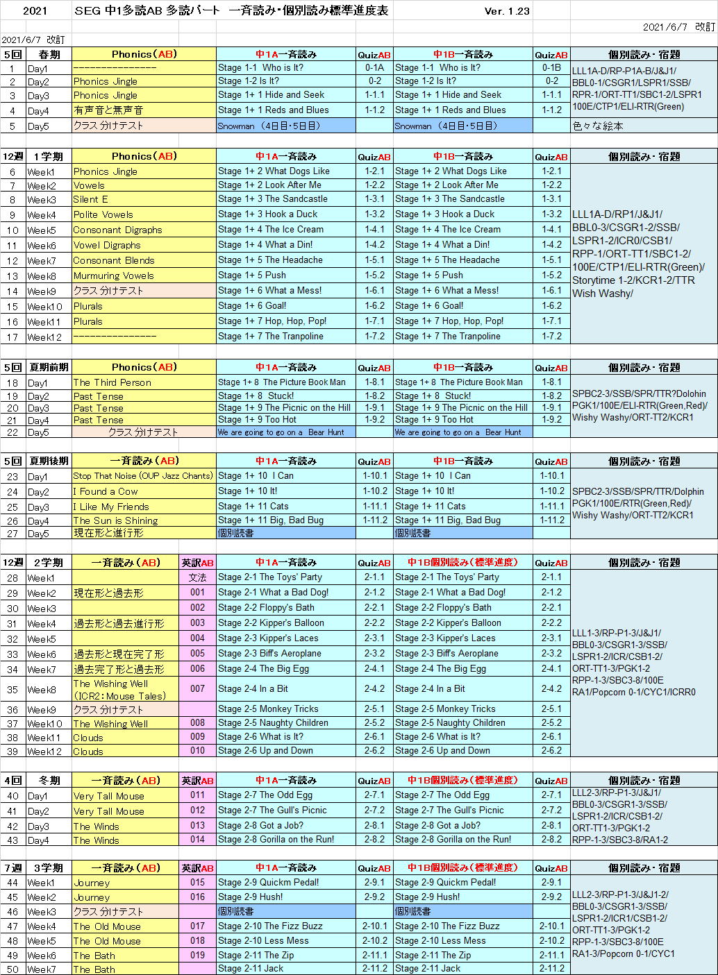 ’†‚P‘½“ÇABƒNƒ‰ƒX@‘½“ǃp[ƒgi“x—\’è•\@