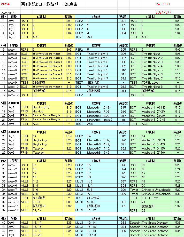 進度・素材は、生徒の実情に応じて、若干変更されることがあります。 OC(外国人パート)進度予定表 多読パート進度表はこちら