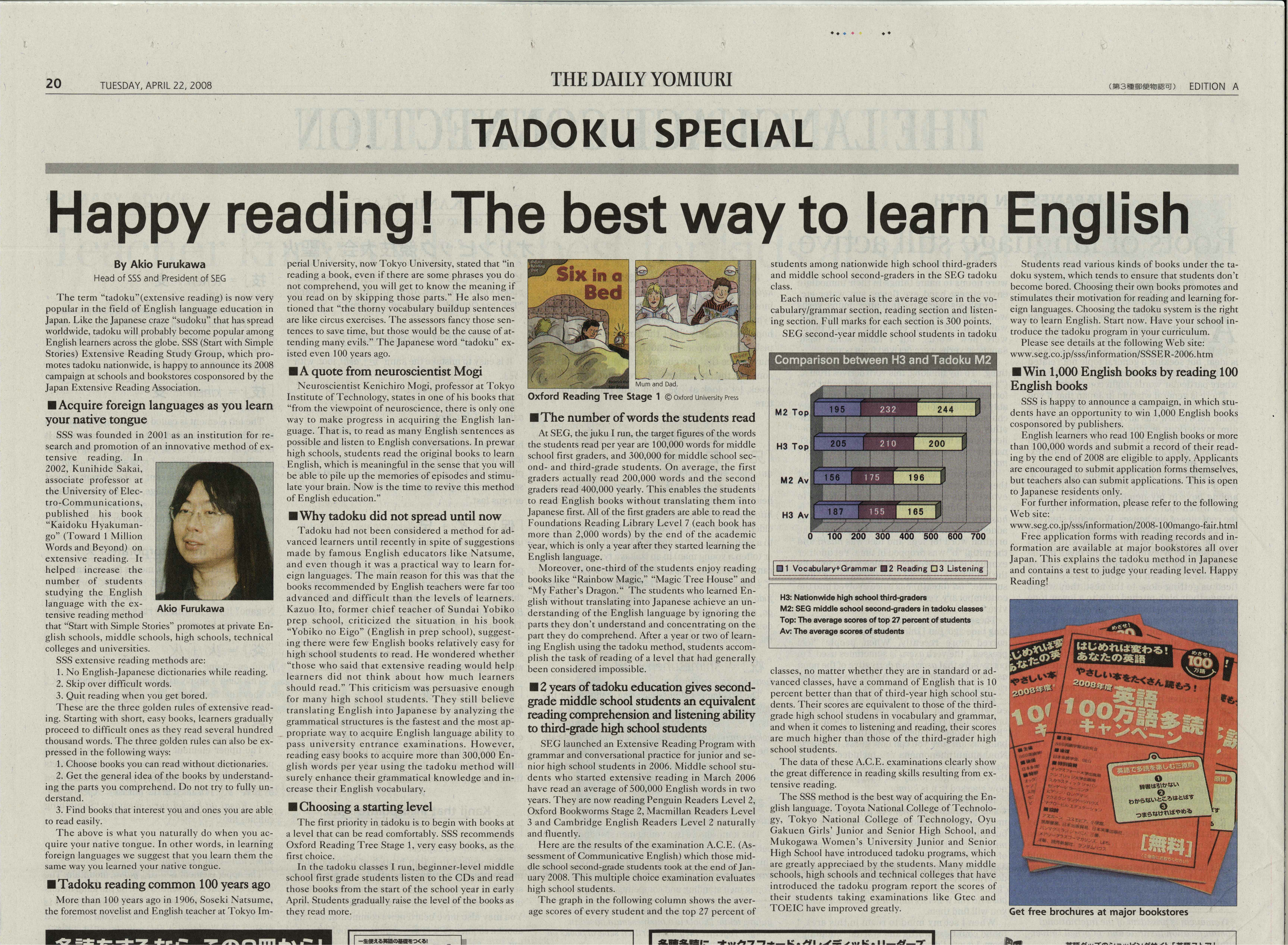 The Daily Yomiuri にSSS多読の紹介記事を書きました